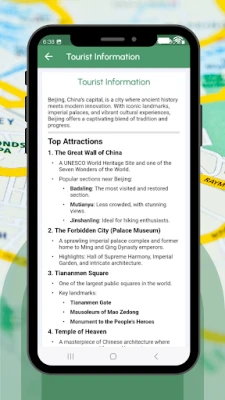 Learn about the top attractions in Beijing with helpful tourist information available right inside the app. Discover famous landmarks, local neighborhoods, shopping areas, and must-see cultural spots.