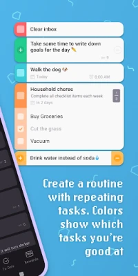 • Color coded tasks and streak counters help you see how you’re doing at a glance